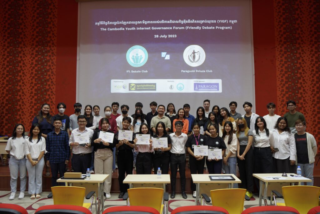 ការជជែកដេញដោលជាលក្ខណៈមិត្តភាពរបស់ Cambodia YIGF នាំមកនូវការចាប់អារម្មណ៍លើ «អភិបាលកិច្ចអ៊ីនធឺណិត» ដោយនាំយកទិដ្ឋភាពអ៊ិនធឺណិតឱ្យស្តាប់ក្នុងចំណោមយុវជន និងសាធារណៈជន ដោយសារការគ្រប់គ្រងអ៊ីនធឺណិតនៅតែជាប្រធានបទថ្មីនៅក្នុងប្រទេសកម្ពុជា។កាលពីថ្ងៃទី 28 ខែកក្កដា គណៈកម្មាធិការវេទិកាអភិបាលកិច្ចអ៊ិនធឺណិតកម្ពុជា (Cambodia YIGF) បានផ្តួចផ្តើមការជជែកដេញដោលជាលក្ខណៈមិត្តភាពលើកដំបូងទាក់ទងនឹងប្រធានបទអភិបាលកិច្ចអ៊ីនធឺណិត ដើម្បីចូលរួមយុវជនក្នុងការពិភាក្សាតាមអ៊ីនធឺណិត។កម្មវិធីជជែកដេញដោលលើកទីមួយមានការចូលរួមដោយក្រុមធំៗចំនួនបួនមកពីសាកលវិទ្យាល័យពីរផ្សេងគ្នាគឺ វិទ្យាស្ថានភាសាបរទេស (IFL) នៃសាកលវិទ្យាល័យភូមិន្ទភ្នំពេញ (RUPP) និងសាកលវិទ្យាល័យ Paragon International University ដែលមានសមាជិកបីនាក់ក្នុងមួយក្រុម។ក្រុម Cookies team, Miyoshi Yumilinda, និង Soun Ratana Somany មកពី IFL តំណាងឱ្យខាងឱ្យក្រុមស្រប ហើយក្រុម InExp team, Lovely Long, Elite Ek, និង Chamroeun Chakri Chhoeung មកពីសាកលវិទ្យាល័យ Paragon តំណាងឱ្យភាគីបដិសេដ។ពួកគេបានជជែកដេញដោលគ្នាអំពីប្រធានបទទីមួយ \"This house believes youths should have a greater role in Internet Governance\"។ហើយសម្រាប់ប្រធានទីពីរ “This house advocates for the inclusion of digital literacy programs in school curricula to promote online responsibility and empower individuals to navigate the digital landscape safely and ethically” ដែលមានក្រុម the e-Ninjas team, Nin Sreyleap, Kem Bunheang និង Tith Mayana Khieu មកពីសាកលវិទ្យាល័យ Paragon តំណាងឱ្យក្រុមស្របដែលជាគូជជែកដេញដោលរវាងភាគីក្រុមបដិសេដមកពី Teletubbies team, Sros Sreyneang, Vong Daly, និង Prom Menglong មកពី IFL ។គណៈកម្មាធិការប្រឹក្សា YIGF កម្ពុជា ឈិត កានីកា បញ្ជាក់អំពីថាតើវាមានសារៈសំខាន់យ៉ាងណាក្នុងការស្វែងយល់បន្ថែមអំពីការគ្រប់គ្រងអ៊ីនធឺណិតនៅក្នុងយុគសម័យឌីជីថល, និងដោយការផ្តួចផ្តើមការជជែកដេញដោលដំបូងទាក់ទងនឹងការគ្រប់គ្រងអ៊ីនធឺណិតក្នុងចំណោមយុវជន យើងនឹងជួយជំរុញ ការចូលរួម និងការយល់ដឹងរបស់យុវជន ក៏ដូចជាសាធារណជនរបស់ តាមរយៈវេទិកាពិភាក្សា។“នៅក្នុងយុគសម័យនេះ ដែលអ៊ីនធឺណេតជាមូលដ្ឋានពាក់ព័ន្ធរបស់យើង ដូចជាការបញ្ជាទិញអាហារ, ដើរទិញឥវ៉ាន់, និងណាត់ជួប,វាមានសារៈសំខាន់ខ្លាំងណាស់សម្រាប់មនុស្សគ្រប់គ្នាក្នុងការយល់ដឹងអំពីការគ្រប់គ្រងអ៊ីនធឺណិត និងសុវត្ថិភាពអ៊ីនធឺណិតផងដែរ ដើម្បីចាប់យកឱកាស និងកំណត់អត្តសញ្ញាណគ្រោះថ្នាក់នៃអ៊ីនធឺណិតនៅក្នុងពិភពបច្ចេកវិទ្យា» នេះជាអ្វីដែលគាត់បាននិយាយ។នាងជឿថាពេញមួយសម័យប្រជុំពិភាក្សា, អ្នកចូលរួម អាចស្វែងយល់បន្ថែមអំពីការគ្រប់គ្រងអ៊ីនធឺណិតពីអ្នកជជែកដេញដោល និងត្រូវបានលើកទឹកចិត្តឱ្យចូលរួមជាមួយគ្នា ទាំងទឡ្ហីករណ៍ប្រឆាំង និងគាំទ្ររ ដើម្បីស្វែងយល់បន្ថែមអំពីការគ្រប់គ្រងអ៊ីនធឺណិត គឺជាពិសេសសម្រាប់អ្នកដែលមិនធ្លាប់បានដឹងអំពីវាពីមុនមក។គាត់បានបន្ថែមថា “ហើយខ្ញុំសង្ឃឹមថា នៅចុងបញ្ចប់នៃការជជែកព